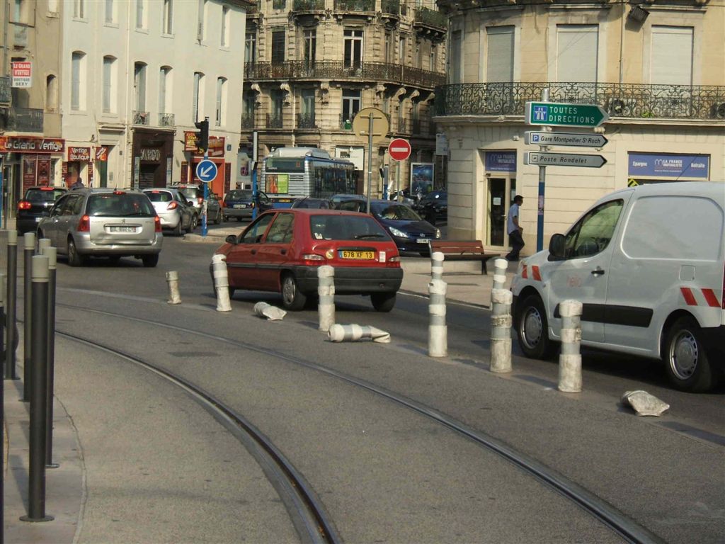 Des balises à remplacer place Saint-Denis à Montpellier. Photo prise le 3 août 2012
