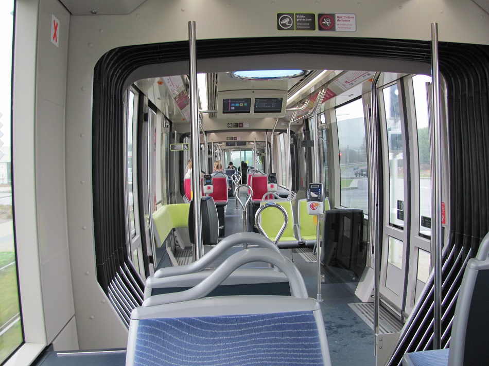 Aménagement intérieur d’une rame brestoise Citadis 302 Alstom photographié le samedi 5 janvier 2013. Copyright : Edouard Paris