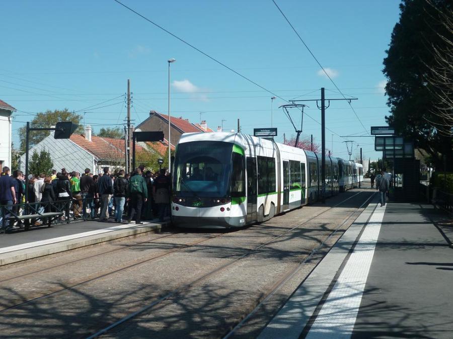 Les rames 357 Incentro ADtranz et 309 Alsthom bloquées à la station « Halvêque » pendant le défilé des supporteurs, le samedi 20 avril 2013
