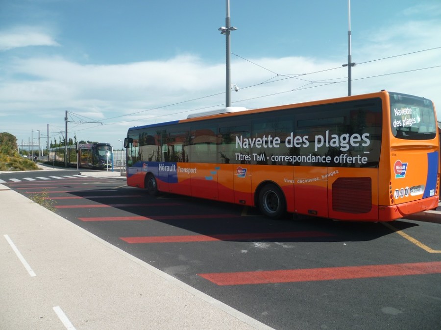 La nouvelle navette des plages à destination du « Grand Travers » est en correspondance à la station « Pérols – Etang de l’Or » de la ligne 3. Photo prise le samedi 1er juin 2013 par Edouard Paris