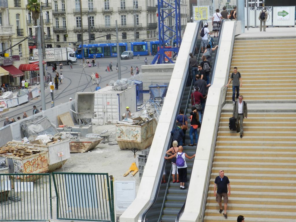 Vue de l’escalier roulant donnant accès au nouveau hall voyageurs de la gare Saint-Roch de Montpellier, ce mardi 18 juin 2013. Copyright : Anje34