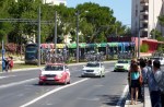 - Avenue Paul Bringuier à Montpellier, la rame 2073 Citadis 402 Alstom de la ligne 3 croise les voitures des équipes du 100ème Tour de France, le vendredi 5 juillet 2013. Copyright : Louis Ferdinand