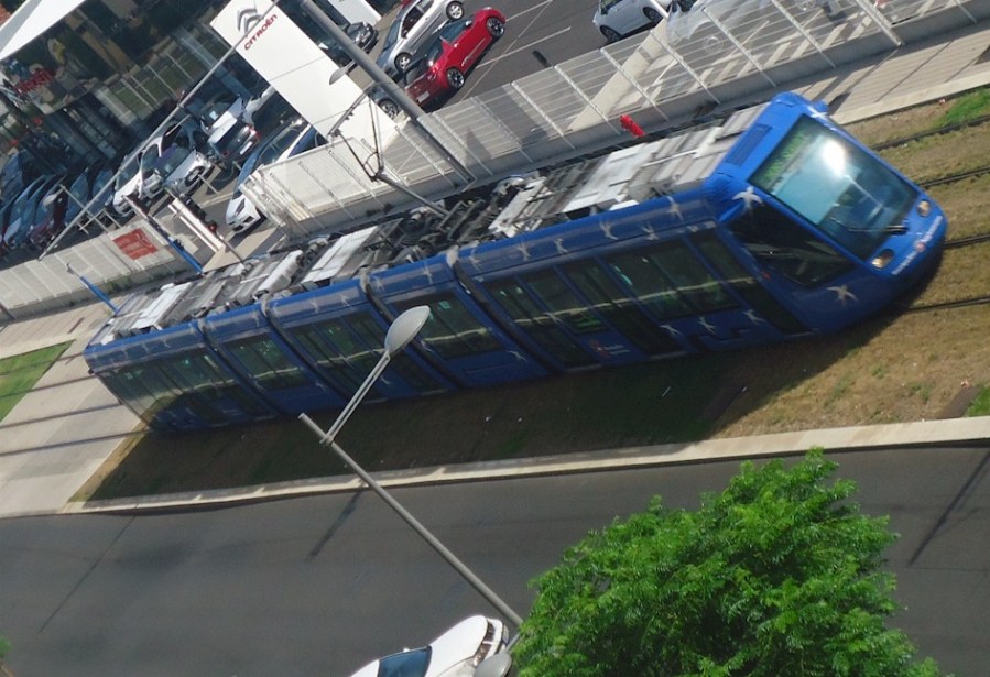 Une rame Citadis 401 Alstom de la ligne 1 photographiée sur l’avenue des Près-d’Arènes, ce mercredi 31 juillet 2013. Copyright : Indiana J