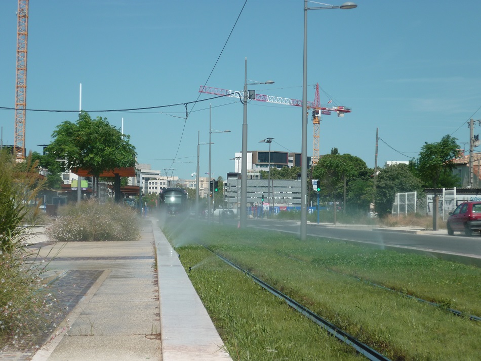 Dysfonctionnement de l’arrosage automatique avant la station « Pablo Picasso », quai direction Juvignac, ce jeudi 15 août 2013 à 12h55. Copyright : Edouard Paris