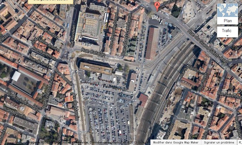Vue aérienne du parking de surface de la gare Saint-Roch. Document : Google Maps