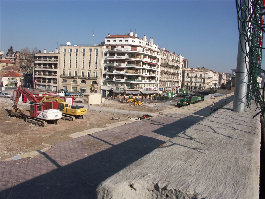 Place nette sur l’emplacement de l’ancien parking silo de la gare de Montpellier. Photo prise le 9 février 2005. Copyright : Anje34