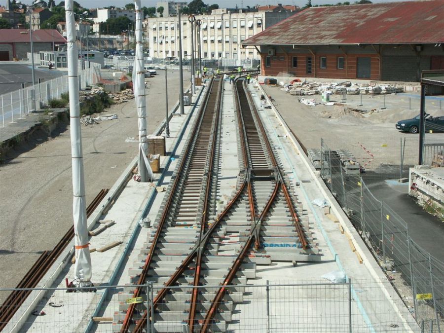 Le 16 mai 2006, les voies étaient posées à la hauteur du futur parking de la gare Saint-Roch à Montpellier. Copyright : Anje34