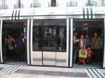 - La griffe de Daniel Buren tant pour le marquage au sol des quais que pour la décoration des portes à deux vantaux des rames de la ligne A du tramway de Tours. Photo prise le vendredi 6 septembre 2013. Copyright : Edouard Paris