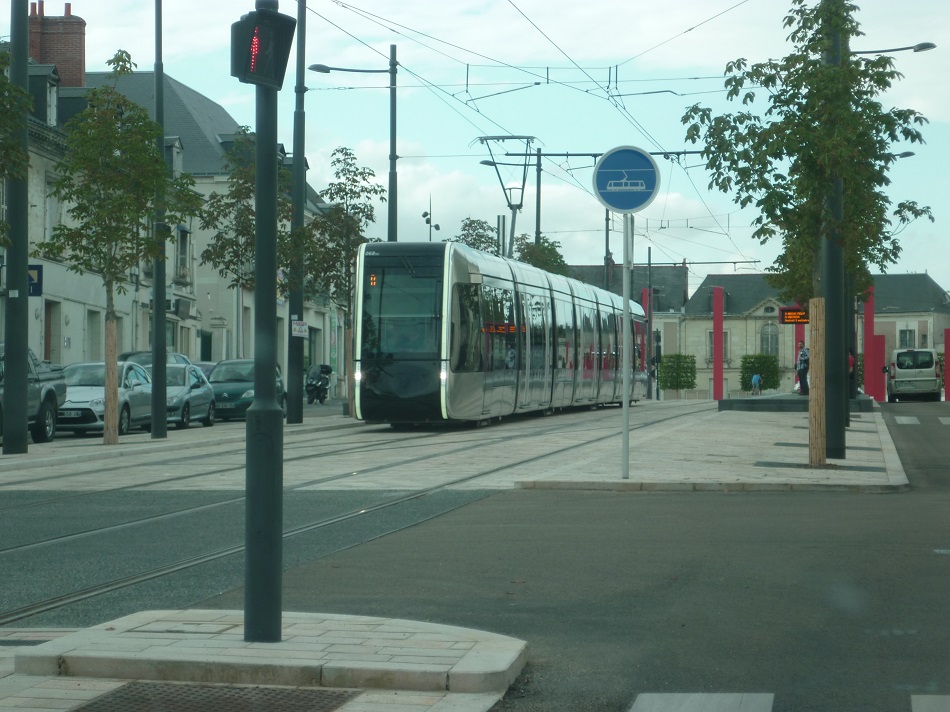 A Tours, la rame 068 Citadis 402 Alstom est photographiée à la station « Tranchée », le vendredi 6 septembre 2013 à 18h30. Copyright : Edouard Paris