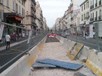 - Image du chantier de la nouvelle extension du réseau de tramways marseillais au bout de la rue de Rome, côté place Castellane. Tramway à l’ horizon… 2014 ! Copyright : Edouard Paris (28/09/2013)