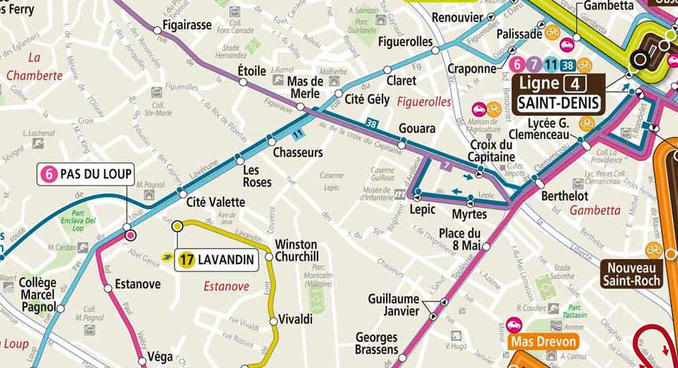 La logique voudrait que la ligne 5 du tramway reprenne l’actuel itinéraire dans Montpellier de la ligne 38 de bus suburbains Cournonsec – Rondelet