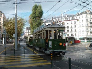 La plus ancienne des motrices participant à cette belle  journée automnale, la Be4/4 n°67 dont la construction remonte à 1901 et la reconstruction à 1936, à laquelle était attelée la remorque Bi n°363 (année 1919), a été affectée à la ligne 3 dont l’itinéraire  comportait une première boucle toujours à partir de la station Rive, soit :  » Rive, Bel-Air (arrêt ligne 12 tpg), Plainpalais (arrêt ex-ligne 17 tpg), Bel-Air (arrêt ligne 12 tpg) et Rive puis dans la continuité, un aller-retour Rive – Moillesulaz.