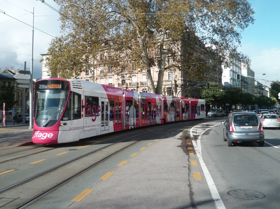 Livrée totale !fage pour la rame 1808 Tango Stadler photographiée sur le boulevard Georges-Favon, le 3 novembre 2013. Copyright : Edouard Paris