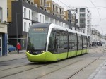 - La largeur extérieure de caisse de 2,40 m représente la norme, comme ici à Brest où la rame 1012 Citadis 302 Alstom vient de quitter la station « Place de Strasbourg ». Photo prise le samedi 5 janvier 2013. Copyright : Edouard Paris
