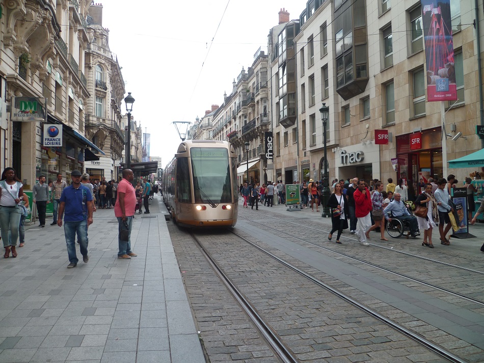 Largeur extérieure de caisse de 2,32 m pour les rames Citadis 301 Alstom de la ligne A du réseau de tramways d’Orléans. Photo prise le samedi 31 août 2013 à proximité de la station « République ». Rame 47. Copyright : Edouard Paris