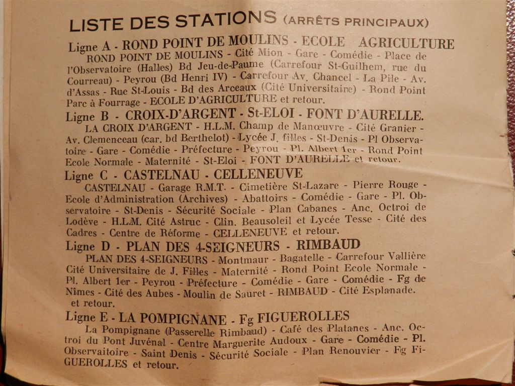 Liste des arrêts des lignes A, B, C, D et E du réseau d’autobus de la RMT. Copyright : Anje34