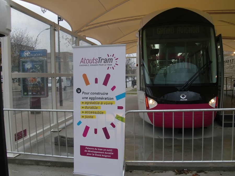 Maquette grandeur nature d’une demi-rame Citadis Compact Alstom d’Avignon. Photo prise le jeudi 19 décembre 2013. Copyright : Michel Bozzola