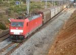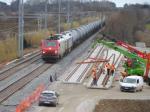 - Un train de fret tracté par la loco Traxx Bombardier E 186 325 – 7 Euro Cargo Rail passe à la hauteur du premier coupon de voie du futur contournement ferroviaire Nîmes-Montpellier, à Lattes, le vendredi 17 janvier 2014 . Copyright : Louis Ferdinand