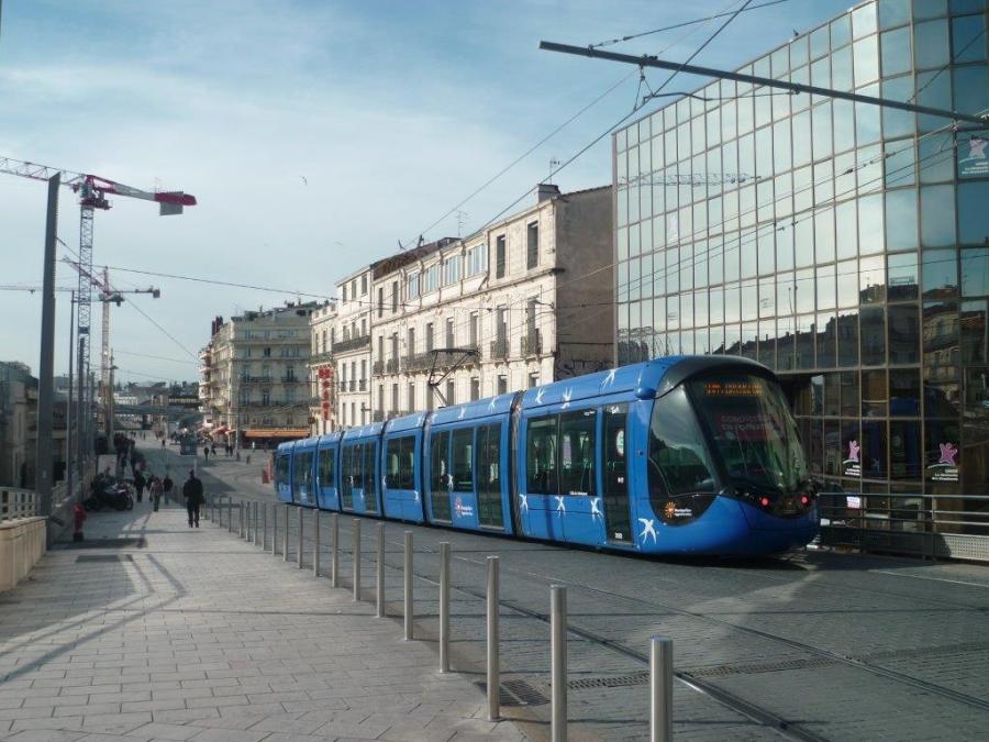 La rame 2092 Citadis 402 Alstom « Tram Académie » est photographiée rue Jules-Ferry à Montpellier, le mercredi 22 janvier 2014. Copyright : Edouard Paris