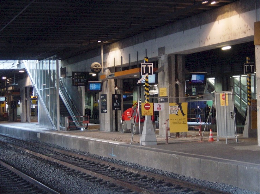 Le quai 2 de la gare Saint-Roch de Montpellier en travaux de mise en accessibilité le mercredi 22 janvier 2014. Copyright : JJD