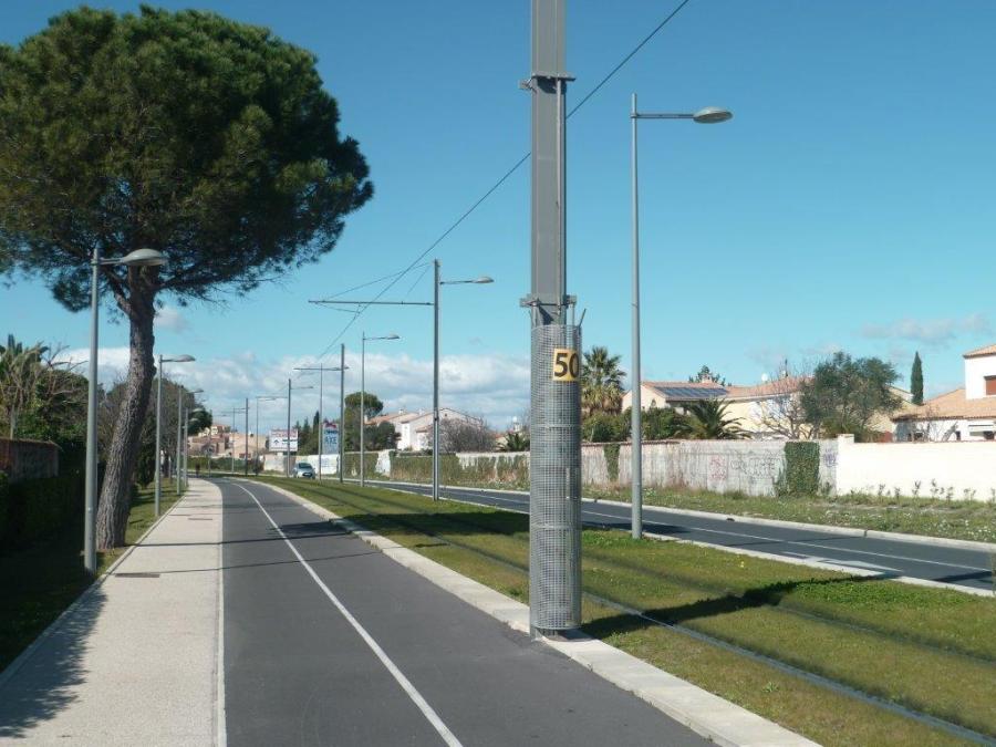 Vitesse limitée à 50 km/h sur la portion de ligne 3 entre la station « Cougourlude » et le terminus « Lattes Centre » . Copyright : Edouard Paris