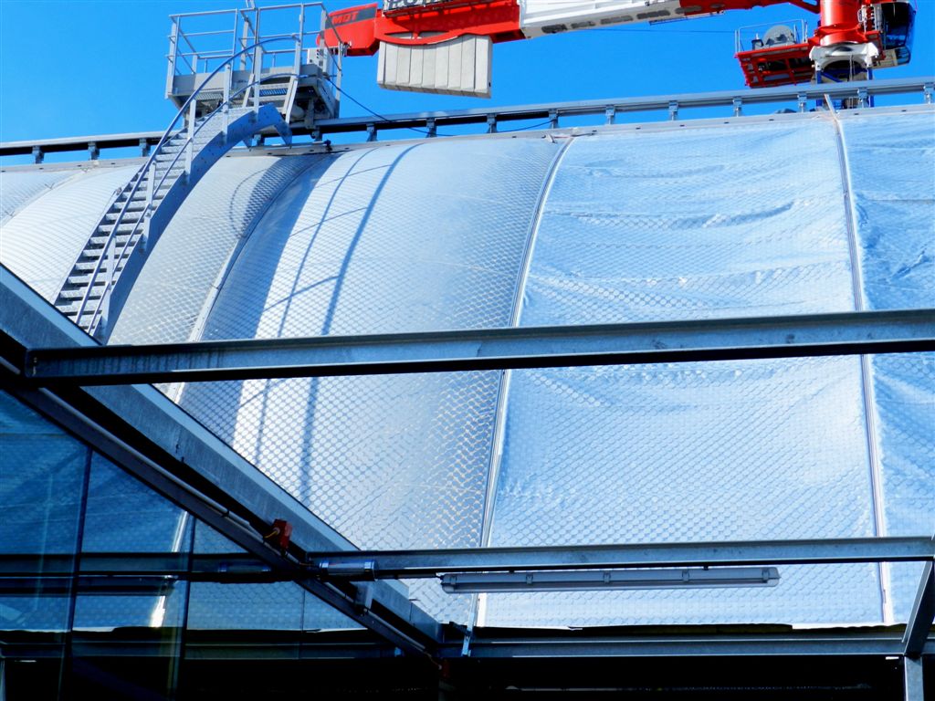 Habillage de la seconde moitié de la nef de la gare Saint-Roch au moyen d’enveloppe en éthylène tétra fluor éthylène (ETFE). Photo prise le vendredi 28 février 2014. Copyright : Anje34