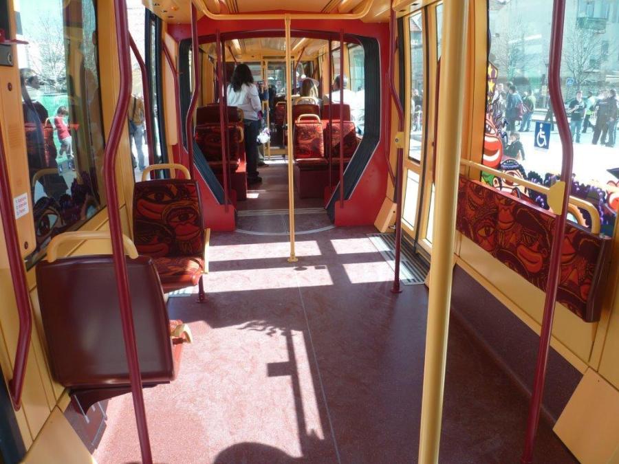 L’intérieur de la rame 002 Citadis Compact Alstom d’Aubagne nous en met plein les yeux. Photo prise le samedi 8 mars 2014. Copyright : Edouard Paris