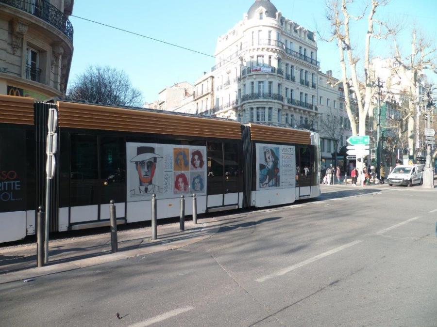 Le même jour, samedi 8 mars 2014, d’autres visages décorent la rame 001 Flexity Outlook Bombardier du tramway de Marseille. Copyright : Edouard Paris