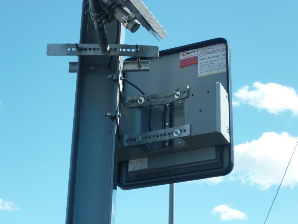 Face arrière du radar afficheur de vitesse installé à Lattes. Photo prise le samedi 1er mars 2014. Copyright : Edouard Paris