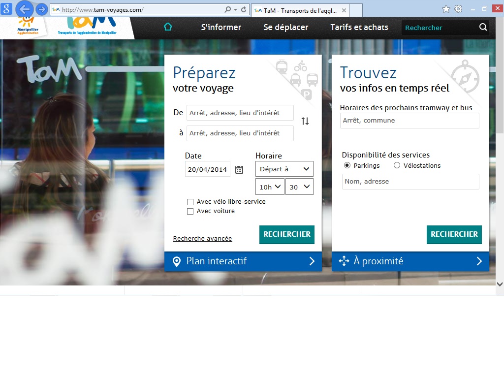 Capture d’écran du nouveau site TaM Voyages. Document : TaM