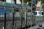 - La vitesse s’affiche en orange alors qu’une rame Citadis 401 Alstom de la ligne 1 roule à 12km/h à la hauteur du radar. A noter la greffe main droite – oreille droite des deux piétons pris dans l’objectif, le samedi 19 avril 2014. Copyright : Anje34