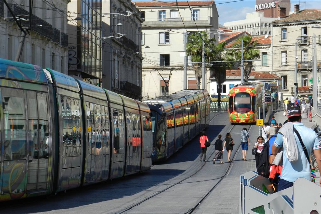 A 16h54, le vendredi 9 mai 2014, le courant rétabli, une rame fleurie de la L2 venant de « Rondelet » est déviée par la station « Place Carnot » de la ligne 3 pour rejoindre la station « Corum » via « Rives-du-Lez » et « Les Aubes ». Copyright : Anje34