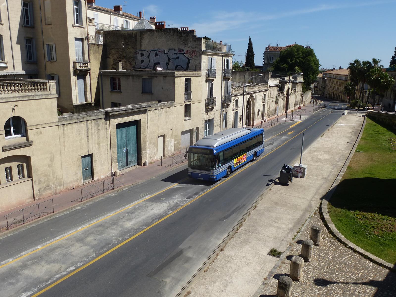 Boulevard du Professeur Louis-Vialleton, un bus de la ligne 6 vient de quitter le nouvel emplacement de l’arrêt « Peyrou », direction Euromédecine. Photo prise le vendredi 16 mai 2014. Copyright : Louis Ferdinand