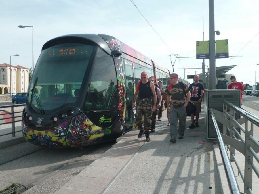 Le samedi matin 7 juin 2014, les fadas de l’équipe La Coustourelle débarquent au terminus « Lattes Centre » de la ligne 3. Copyright : Edouard Paris