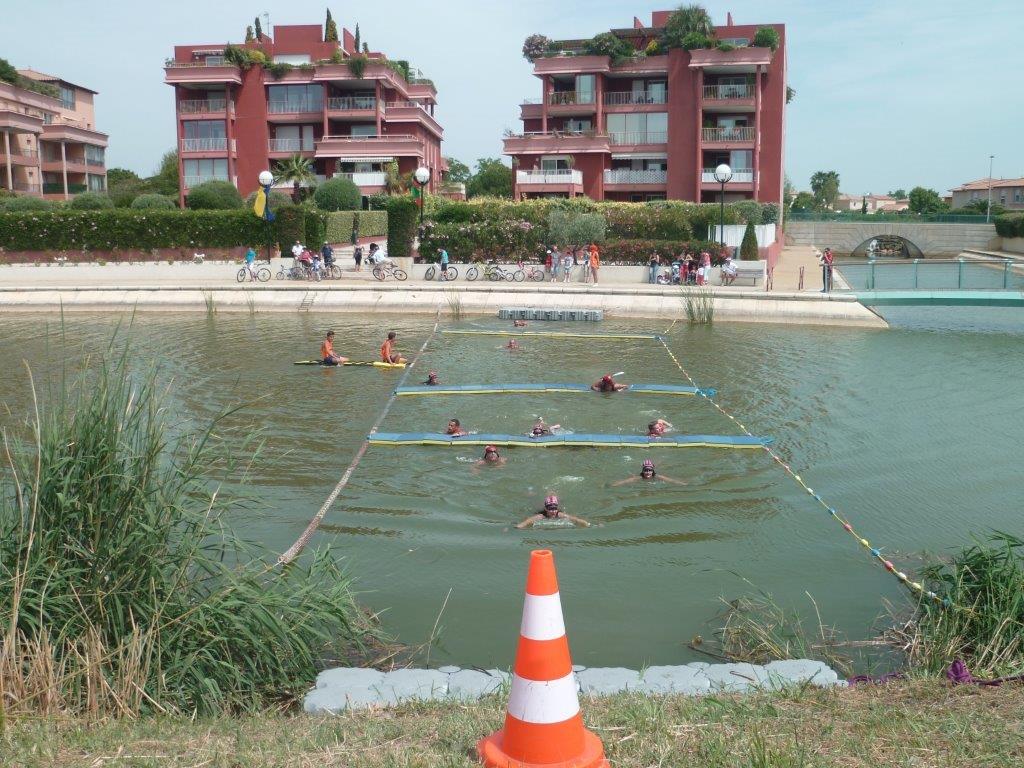 Nage indienne dans le bassin de Port Ariane à Lattes, un des moments forts de la ruée des fadas. Photo prise le samedi 7 juin 2014. Copyright : Edouard Paris