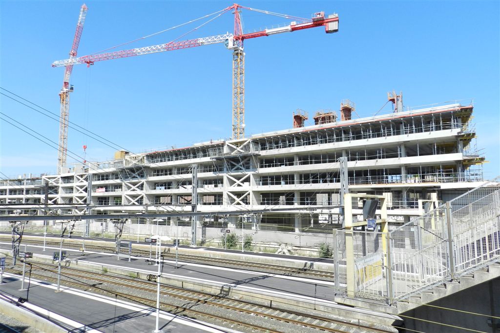 Prise de vue du parking silo Le Nouveau Saint-Roch en construction depuis le Pont-de-Sète, le vendredi 13 juin 2014. Copyright : Anje34