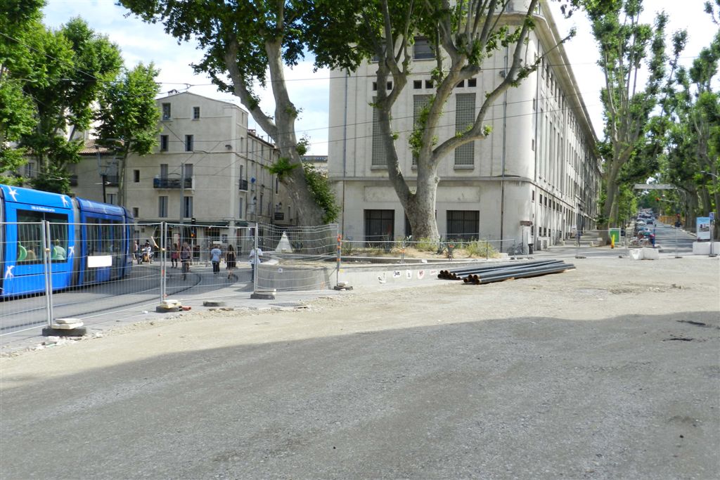 Le calme plat sur le chantier de la place Albert 1er à Montpellier, le jeudi après-midi 26 juin 2014. Copyright : Anje34