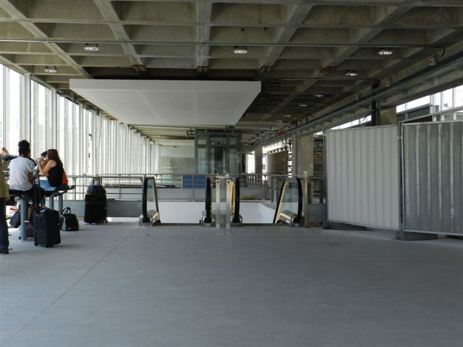 Gare Saint-Roch à Montpellier, les escaliers mécaniques qui relient le hall de la gare historique au hall supérieur sont à nouveau opérationnels. Photo prise le samedi 5 juillet 2014. Copyright : Anje34