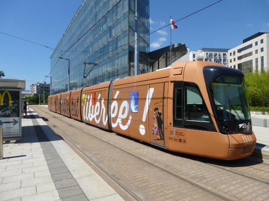 ← 23 juillet 2014 – Cet été sur le réseau TAG, une livrée intégrale « Grenoble est libérée ! » habille la rame 6001 Citadis 402 Alstom