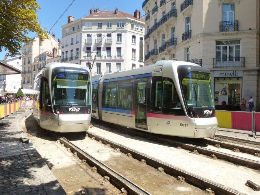 Réfection des voies, rue Félix-Poulat à Grenoble, sur le tronçon commun aux lignes A et B. Photo prise le mardi 15 juillet 2014. Copyright : Louis Ferdinand