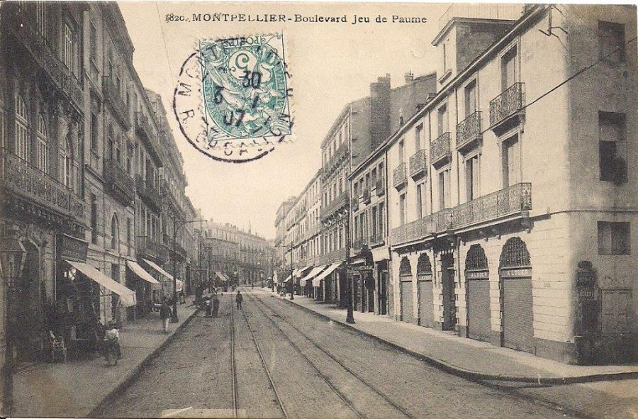 Le boulevard du Jeu-de-Paume à Montpellier, entre la rue Four-des-Flammes et la rue Saint-Guilhem. Collection : Michel Bozzola