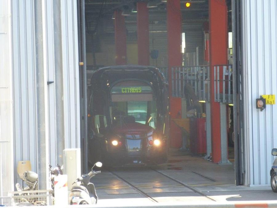 3 août 2014 – Une rame Citadis 302 Alstom multiligne en phase de préparation à Montpellier