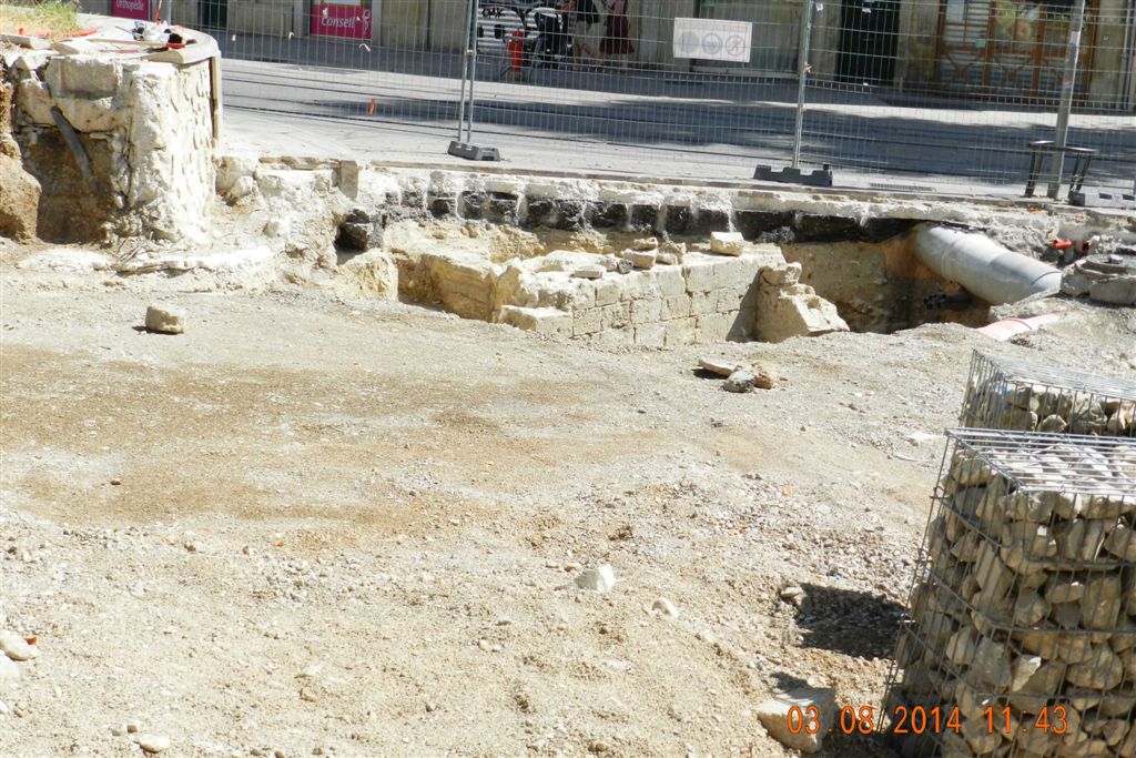 4 août 2014 – Place Albert 1er à Montpellier, des vestiges archéologiques mis à jour