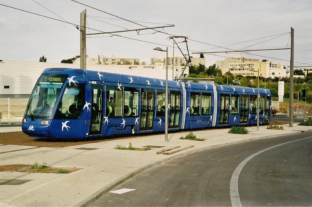 11 août 2014 – Première sortie de la première rame Citadis 301 Alstom à Montpellier, le 11 août 1999