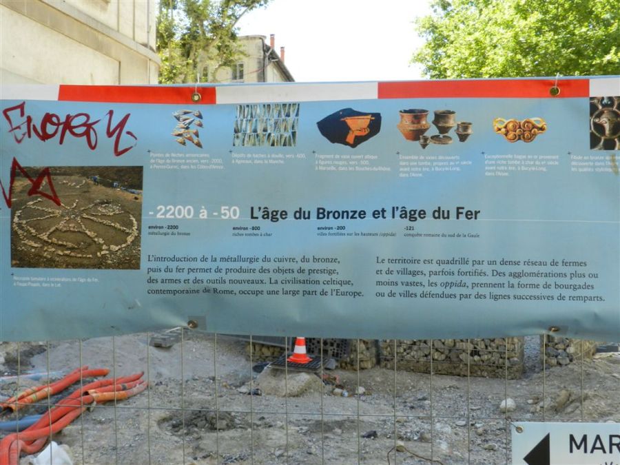 Place Albert 1er à Montpellier, entre – 2200 et – 50 l’âge du bronze et l’âge du fer. Photo prise le vendredi 15 août 2014. Copyright : Anje34