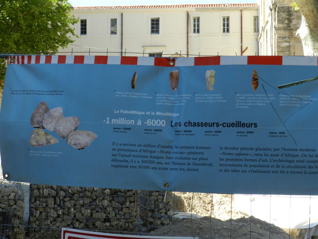 Place Albert 1er à Montpellier, entre – 1 million et – 6000 c’est la période des chasseurs cueilleurs. Photo prise le vendredi 15 août 2014. Copyright : Anje34