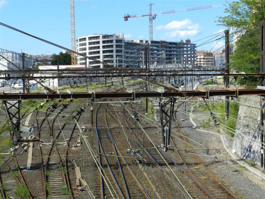 Le futur parking silo Le Nouveau Saint-Roch photographié depuis le pont surplombant les voies ferrées au sud de la gare Saint-Roch, boulevard Vieussens à Montpellier, le 15 août 2014. Copyright : Anje34