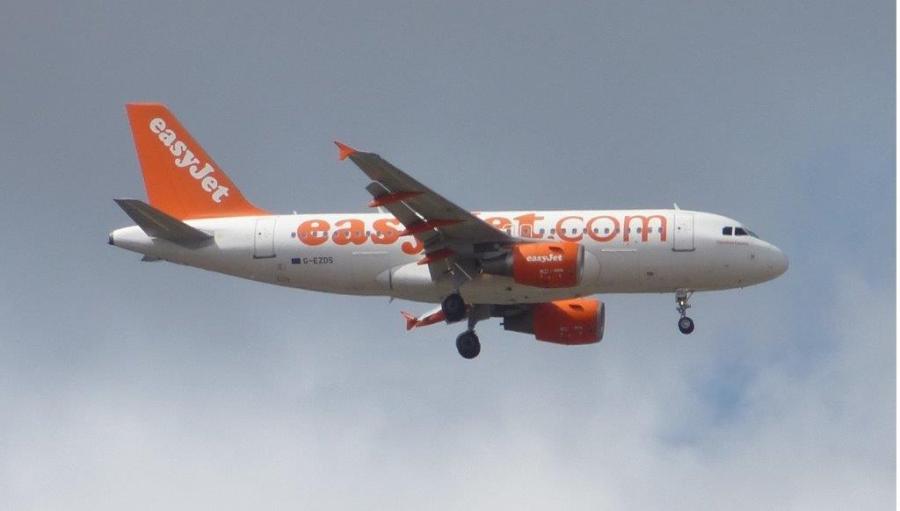 Un Airbus A319-111 de la compagnie easyJet (G-EZDS) approche de l’aéroport Toulouse Blagnac, le mercredi 13 août 2014 à 11h30. Copyright : Louis Ferdinand