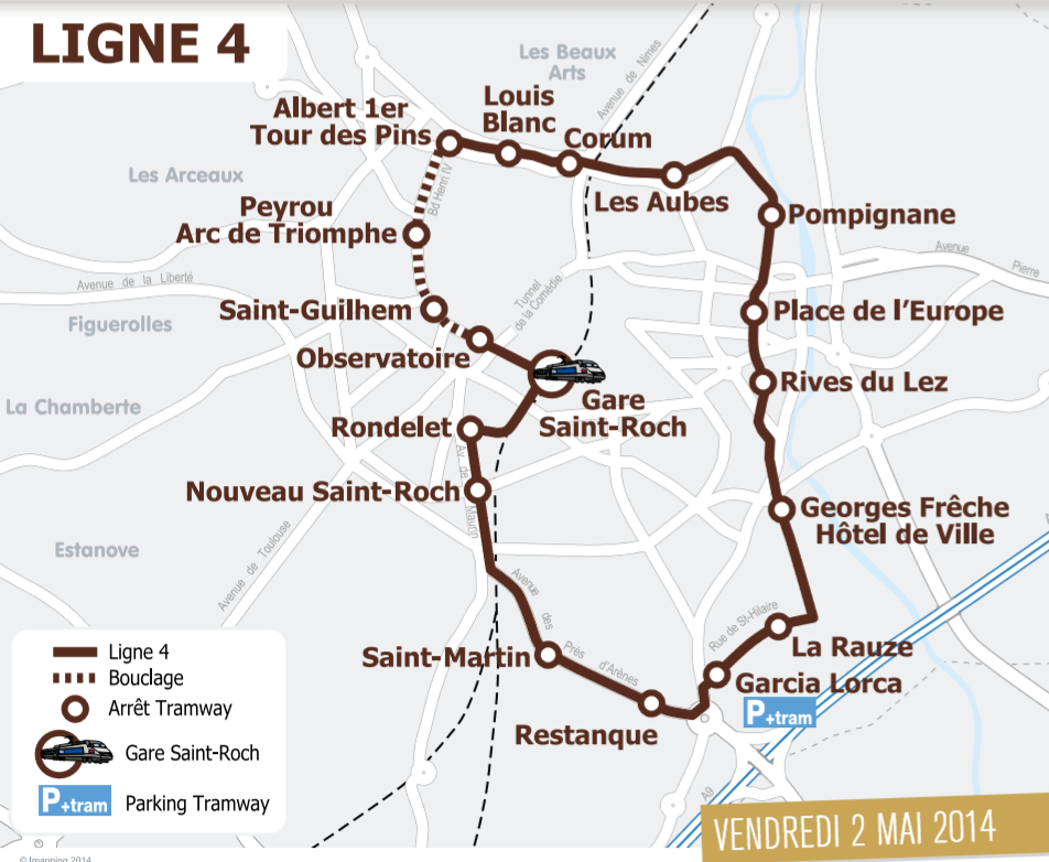 Dénomination des stations du chaînon manquant de la L4 au 2 mai 2014. Document : Montpellier Agglomération