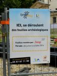 - Panneau annonçant le chantier des fouilles archéologiques, place Albert 1er à Montpellier, photographié le vendredi 22 août 2014. Copyright : Anje34